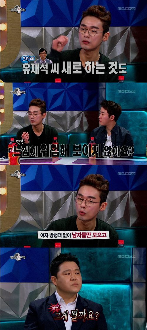 이어 “유재석 씨 새로 하시는 프로그램도 약간 그런 것일 것”이라며 “약간 느낌이 위험해 보이지 않느냐. 남자 MC들만 있는데 여자방청객 없이 남자들만 모으고 제목도 무슨 ‘남자다’고, 그게 될까요?”라며 의구심을 가졌다.