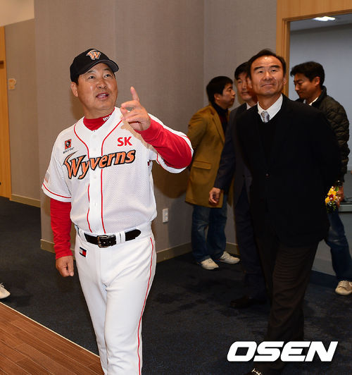 20일 오후 인천 문학구장에서 '2014 프로야구' 시범경기 SK 와이번스와 LG 트윈스의 경기가 열릴 예정인 가운데 SK 와이번스 클럽하우스에서 이만수 감독이 새롭게 바뀐 트레이닝 룸을 살펴보고 있다.