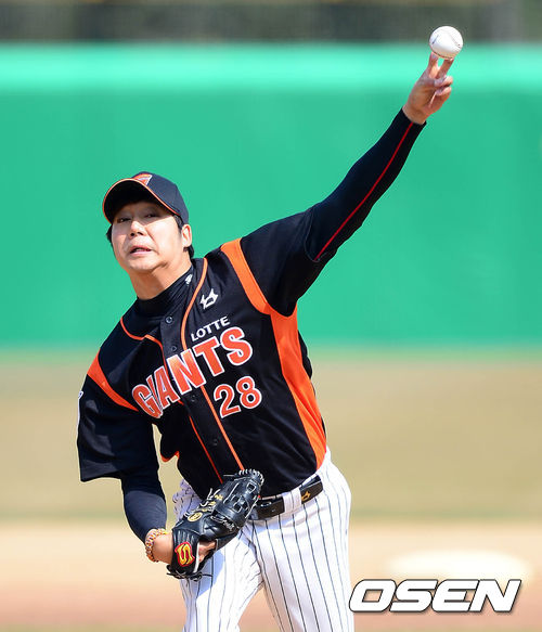 1회말 무사에서 롯데 선발투수 장원준이 힘차게 공을 던지고 있다.