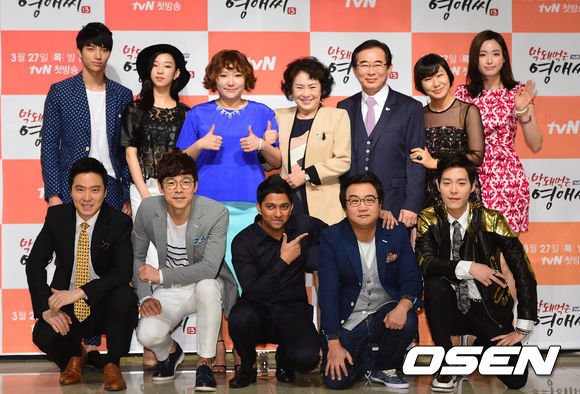 20일 오후 서울 명동 라루체웨딩홀에서 열린 tvN 드라마 '막돼먹은 영애씨 13' 제작발표회에 참석한 출연배우들이 모두 모여 포토타임을 갖고 있다.