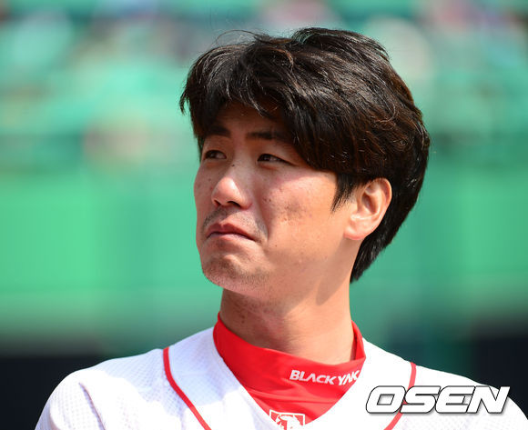 20일 오후 인천 문학구장에서 '2014 프로야구' 시범경기 SK 와이번스와 LG 트윈스의 경기가 열렸다. 경기 전 SK 김광현이 관중석을 바라보고 있다.