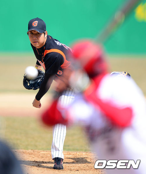 1회말 무사에서 롯데 선발투수 장원준이 힘차게 공을 던지고 있다.