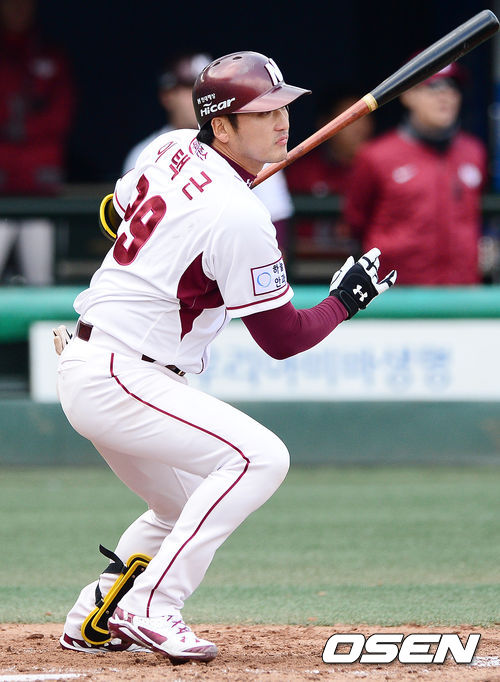 3회말 무사 2루에서 넥센 이택근이 1타점 적시타를 날리고 있다.