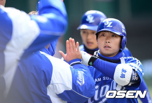 올해 개막전 엔트리를 꿈꾸는 이상훈의 시범경기 첫 홈런. 삼성은 이 홈런으로 3-7 추격에 나섰다.