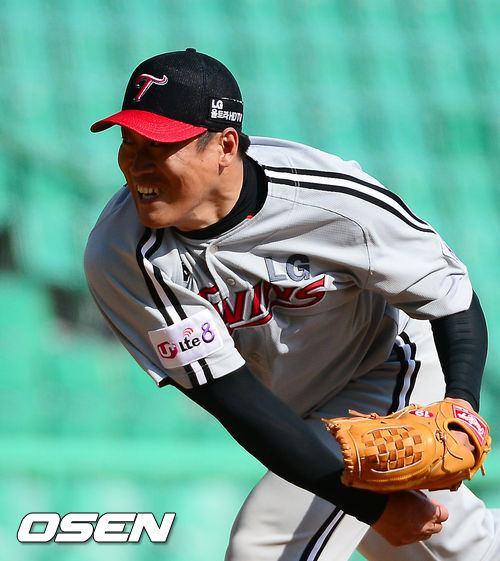 20일 오후 인천 문학구장에서 '2014 프로야구' 시범경기 SK 와이번스와 LG 트윈스의 경기가 열렸다. 7회말 마운드에 오른 LG 정현욱이 힘차게 공을 뿌리고 있다.