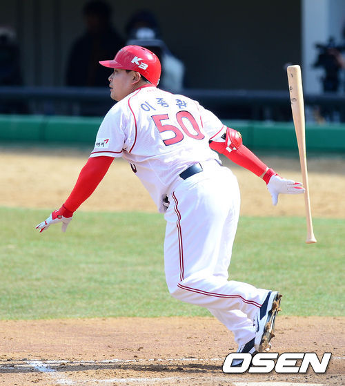 7회말 2사 3루에서 KIA 이종환이 적시타를 치고 있다.