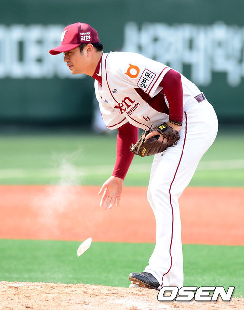 9회초 넥센 손승락이 삼성 우동균에 역전 2타점 적시타를 허용하고 아쉬워하고 있다.