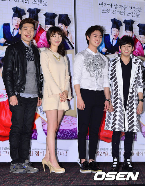 배우 백봉기,배슬기, 이민호, 안용준이 20일 오후 서울 행당동 CGV왕십리에서 진행된 영화 '청춘학당 : 풍기문란 보쌈 야사'(감독 도창훈) 언론시사회에 참석해 포토타임을 갖고 있다.