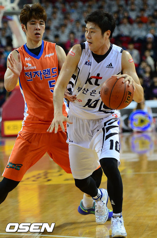 20일 오후 인천 부평구 삼산월드체육관 열린 '2013-2014 KB국민카드 프로농구' 6강 플레이오프 5차전 인천 전자랜드와 부산 KT의 경기, 1쿼터 KT 조성민이 전자랜드 김상규의 수비를 뚫으려 하고 있다.