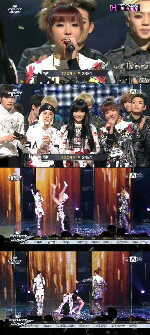 그룹 2NE1이 '인기가요'에 이어 '엠카운트다운'에서 1위를 차지하고 "양현석 사장님 테디 오빠 고맙다"고 소감을 밝혔다.