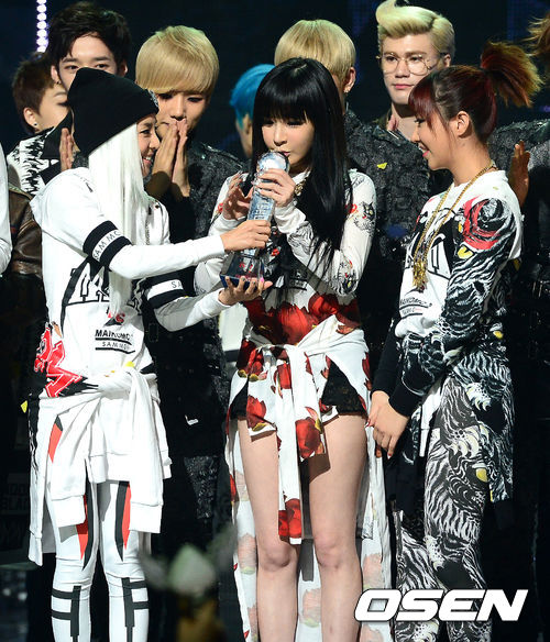 이날 2NE1은 '컴백홈(COME BACK HOME)'으로 1위를 차지했다. 또 박봄은 1위 공약으로 내세웠던 덤블링을 직접 선보이며 유연한 몸매를 과시했다.