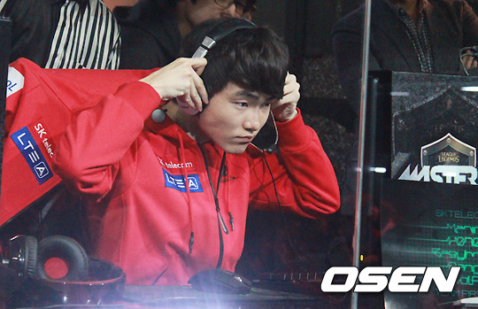 SK텔레콤 K '페이커' 이상혁이 롤 마스터즈 2세트 출전을 위해서 준비하고 있다. 앞선 '롤 마스터즈' 1세트에서는 나진 소드가 SK텔레콤 S를 제압, 나진이 SK텔레콤을 상대로 1-0으로 앞서고 있다.