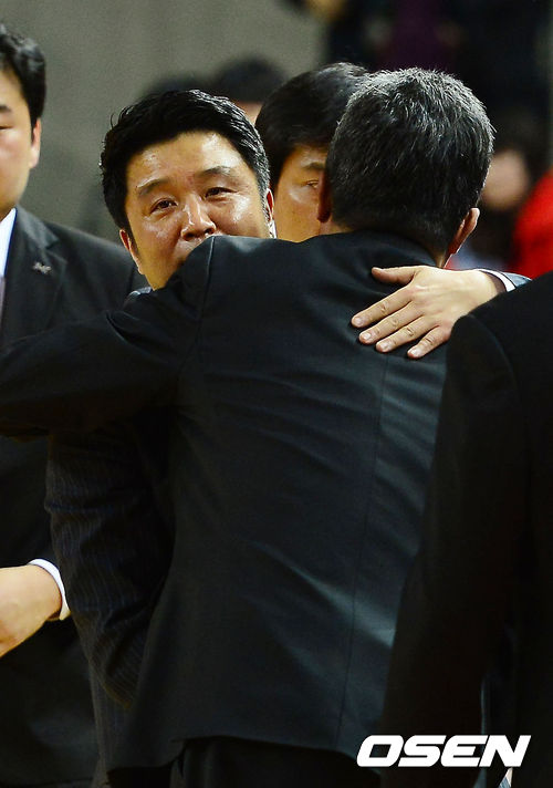 경기를 마치고 전자랜드 유도훈 감독이 KT 전창진 감독과 포옹을 하고 있다. / rumi@osen.co.kr