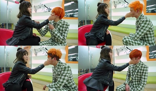 21일 공개된 에이프린스의 '키스할래요?' 티저 영상에는 개그우먼 오나미가 에이프린스 멤버의 뺨을 때리는 모습이 담겼다.