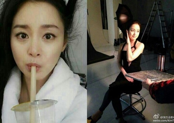 김태희는 지난 20일 자신의 웨이보(중화권 SNS)에 "지면 촬영 중이예요. 헤어 변형하는 동안 버블티로 당 보충하는 중. 완전 맛있어요"라는 글과 함께 근황을 전하는 여러 장의 사진을 게재했다.