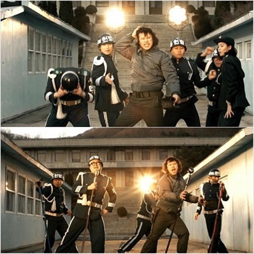 공개된 사진 속에는 판문점을 배경으로 역동적인 안무를 선사하고 있는 장미여관의 모습이 담겨있다. 특히 육중완은 특유의 코믹스러운 표정과 막춤으로 빛나는 존재감을 발산, 보는 이들의 웃음을 자아낸다.