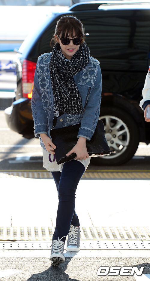 레인보우 정윤혜가 출국장으로 들어서고 있다.