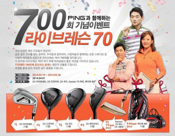 PING과 함께 진행하는 이번 이벤트는 3월 28일(금)까지 J 골프 홈페이지(www.jgolfi.com)의 해당 이벤트 페이지에서 ‘라이브레슨 70’에서 가장 받고 싶은 레슨 내용을 적으면 응모 가능하다.