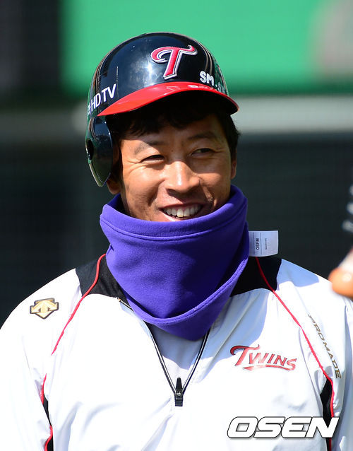 21일 오후 인천 문학구장에서 '2014 프로야구' 시범경기 SK 와이번스와 LG 트윈스의 경기가 열렸다. 경기 전 LG 이병규가 훈련 중 미소짓고 있다.