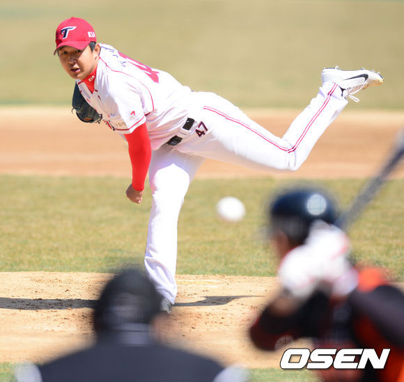 1회초 무사에서 KIA 선발투수 박경태가 힘차게 공을 던지고 있다.