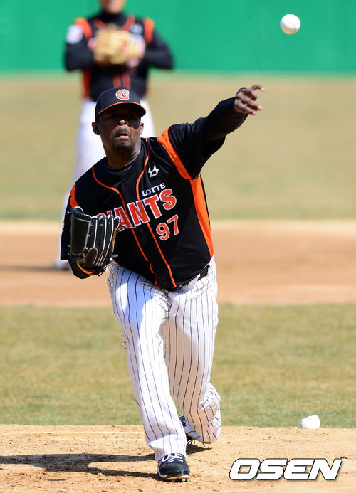 1회말 무사에서 롯데 선발투수 유먼이 힘차게 공을 던지고 있다.