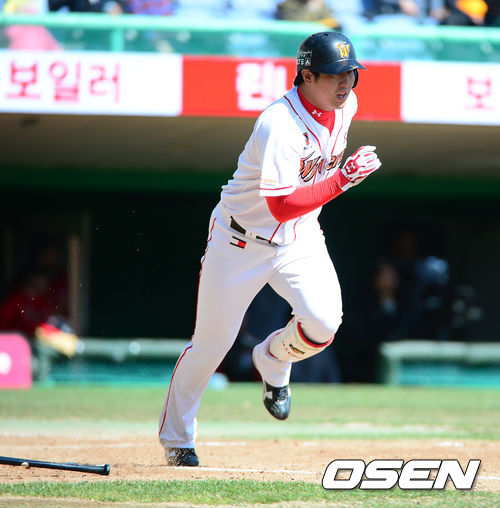 21일 오후 인천 문학구장에서 '2014 프로야구' 시범경기 SK 와이번스와 LG 트윈스의 경기가 열렸다. 3회말 2사 주자 1루 SK 최정이 좌월 동점 투런 홈런을 날린 후 천천히 달려나오고 있다.