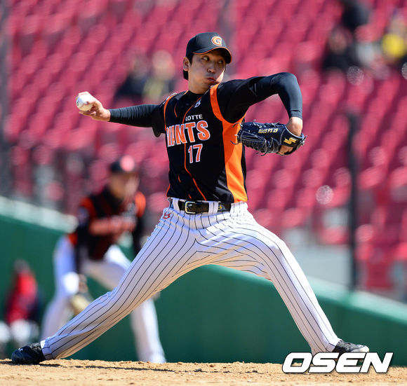 4회말 롯데 심수창이 힘차게 공을 던지고 있다.