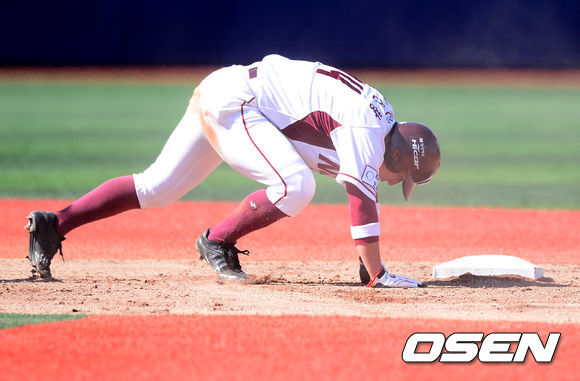 5회말 무사 1루에서 넥센 서건창이 이택근의 내야땅볼에 포스아웃당하고 아쉬워하고 있다.