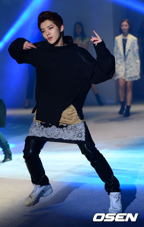 21일 오후 서울 동대문 디자인 플라자에서 열린 '2014 F/W 서울패션위크'에서 엑소 루한이 멋진 무대를 선보이고 있다