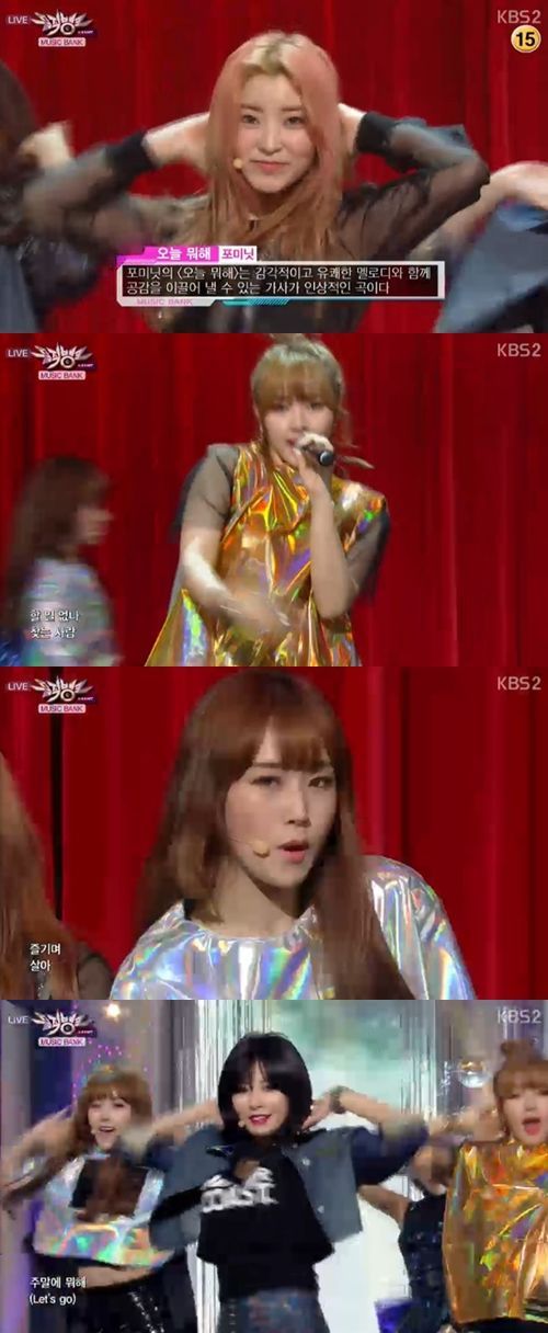 포미닛은 21일 방송된 KBS 2TV 음악프로그램 '뮤직뱅크'에서 '오늘 뭐해?'를 부르며 컴백했다.