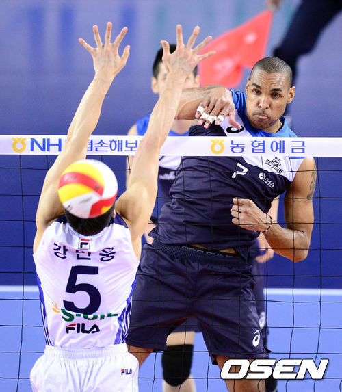 대한항공도 쉽게 물러서지 않았다. 김형우의 블로킹과 곽승석의 백어택 등을 묶어 19-21로 턱밑 추격전을 벌였다. 거기까지였다. 현대캐피탈은 문성민의 시간차, 아가메즈의 백어택, 문성민과 윤봉우의 연이은 블로킹으로 기분 좋게 1세트를 따냈다.