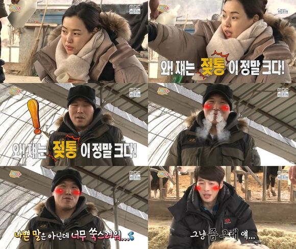 이하늬는 21일 오후 방송된 MBC 예능프로그램 '사남일녀'에서 젖소를 향해 "젖통이 진짜 크다"라고 말해 남자들을 당황케 했다.