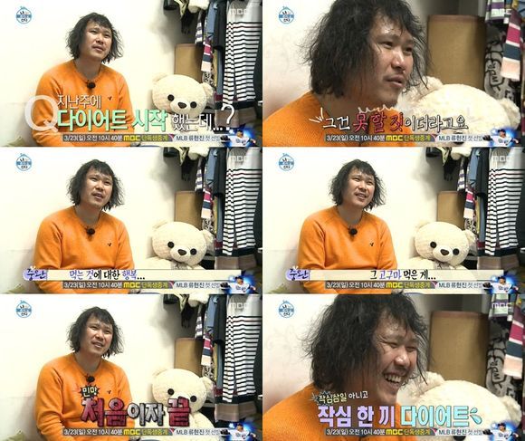 그는 이날 아침 식사로 즉석밥 2개와 계란 2개 등을 이용해 카레 오므라이스를 해먹었다. 이에 제작진은 그에게 "지난주에 다이어트 하기로 하지 않았나"라고 질문을 던졌다.