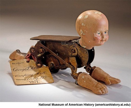 국립미국역사박물관에 올라있는 이 인형은 '자연스럽게 기는 아기인형'으로 알려졌다. 조지 펨버튼 클라크라는 사람이 만들었으며, 1871년 특허를 받았다.
