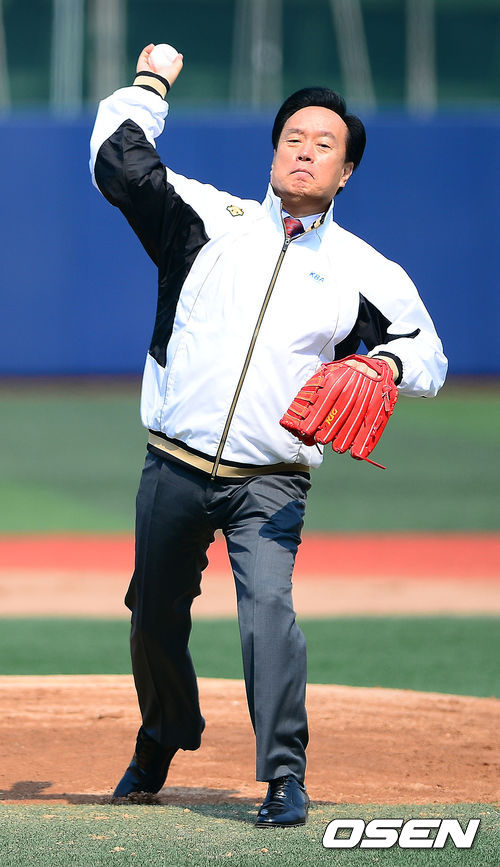 '2014 고교야구 주말리그 시작을 알리는 이병석 회장의 시구'
