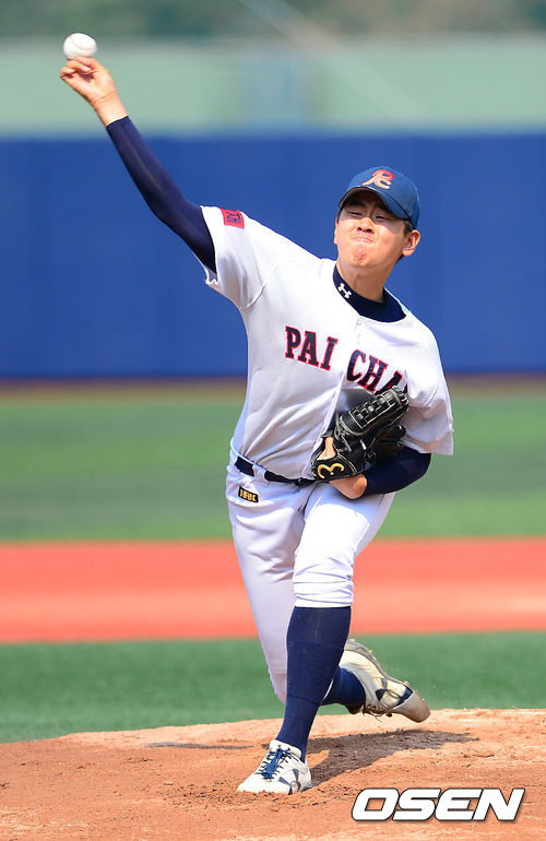 22일 오후 서울 목동구장에서 열린 '2014 고교야구 주말리그' 성남고와 배재고의 경기, 1회초 배재고 문석종이 역투하고 있다.