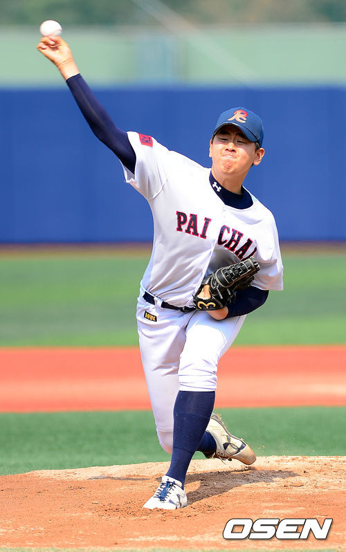 22일 오후 서울 목동구장에서 열린 '2014 고교야구 주말리그' 성남고와 배재고의 경기, 1회초 배재고 문석종이 역투하고 있다.