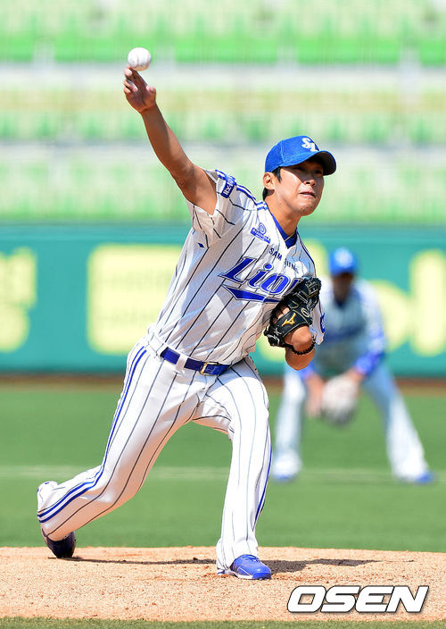 삼성 선발 윤성환이 힘차게 공을 뿌리고 있다.