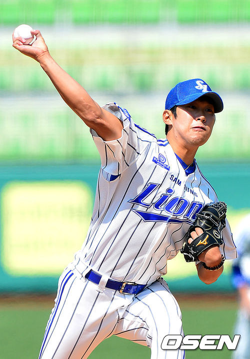 삼성 선발 윤성환이 힘차게 공을 뿌리고 있다.