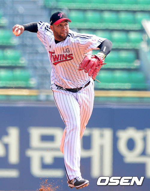 1회초무사에서 LG 벨이 KIA 이대형이 3루땅볼 타구를 처리하고 있다.