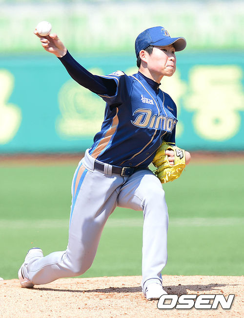NC 선발 이재학이 힘차게 공을 뿌리고 있다.