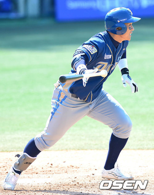 2회초 NC 공격 2사 1, 2루 상황 이종욱이 1타점 중전 적시타를 날리고 있다.