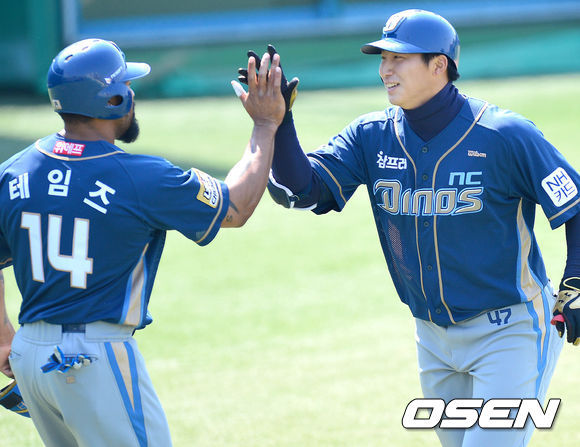 6번 중견수로 선발 출장한 나성범은 2회 테임즈의 좌전 안타로 만든 무사 1루 상황에서 삼성 선발 윤성환의 3구째를 잡아 당겨 115m 짜리 우월 투런포로 연결시켰다.
