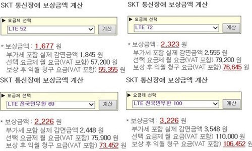SK텔레콤(이하 SKT)이 통신장애에 따른 배상금액을 약관보다 많은 요금의 10배로 정함에 따라, 가입자들이 받을 수 있는 보상액에 관심이 쏠리고 있다. 이에 보상금액 계산기까지 등장했다.