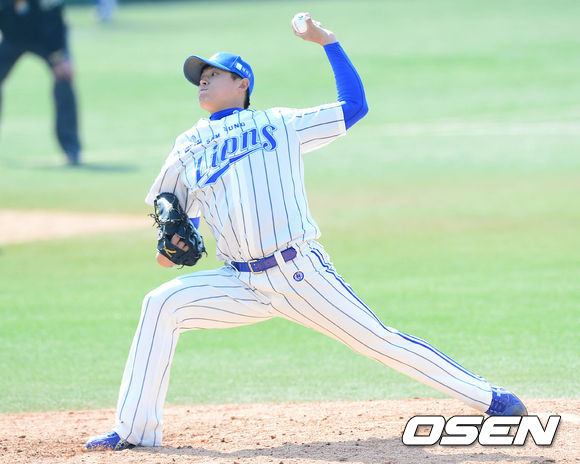 6회초 NC 공격 마운드에 오른 삼성 투수 임현준이 힘차게 공을 뿌리고 있다.