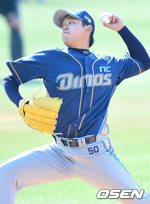 7회말 삼성 공격 마운드에 오른 NC 투수 손정욱이 힘차게 공을 뿌리고 있다.