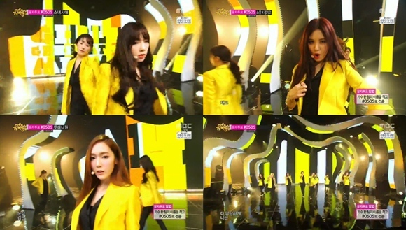 이날 소녀시대는 노란색 재킷과 검정색 의상을 매치해 강렬함을 줬다. 매니시룩을 완벽하게 소화하면서도 특유의 여성스러운 매력을 잃지 않았다. 또 완벽한 칼군무로 명불허전의 무대를 꾸몄다.