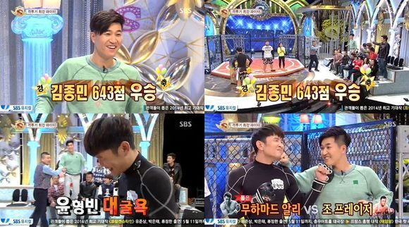 가수 김종민이 파이터 윤형빈을 꺾었다.
