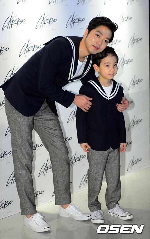 22일 오후 서울 동대문 디자인 플라자에서 열린 '2014 F/W 서울패션위크' 장광효 컬렉션에 참석한 김형규가 아들과 포토타임을 갖고 있다.