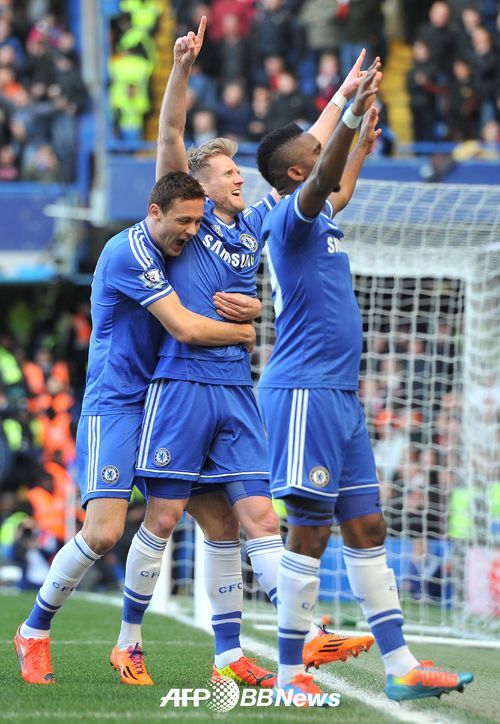 첼시의 안드레 슈얼레가 팀의 두 번째 골을 넣고 환호하고 있다.